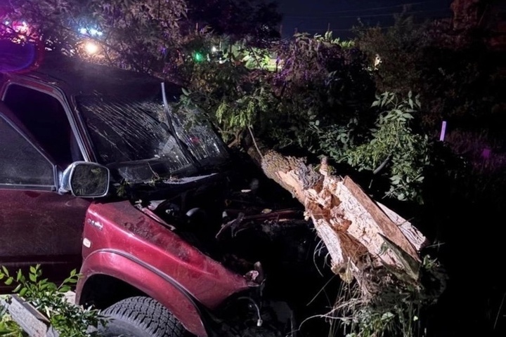 От силы удара автомобиль «Грейт Вол» был отброшен в сторону. В результате этого внедорожник оказался за пределами проезжей части, в кювете, и врезался в дерево.