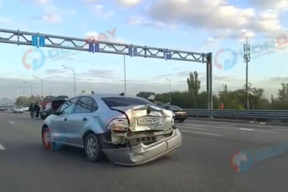 Машины встали посреди проезжей части в районе памятника «Тачанка-ростовчанка». По кадрам видно, что у одного из авто смята передняя часть, а у другого - задняя.