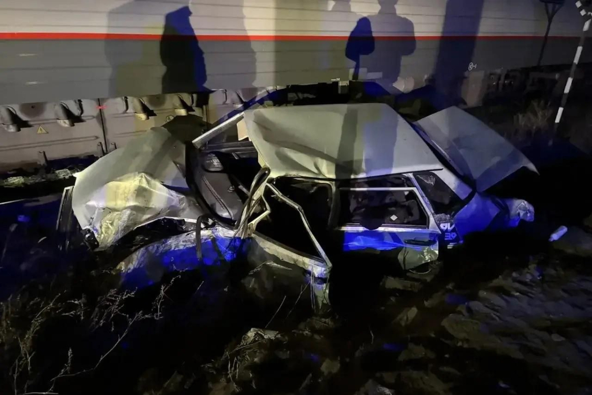 По предварительной информации, 21-летний водитель «ВАЗ 2199» ехал по улице Московская. Автовладелец не выполнил требования от гаишника остановиться. Он стал удирать от правоохранителей.нал остановиться. Машина выехала на жд переезд на красный сигнал светофора. В это время по путям двигался пассажирский поезд. Машинист попытался затормозить перед авто, но было уже поздно. Габаритный транспорт протаранил легковушку.