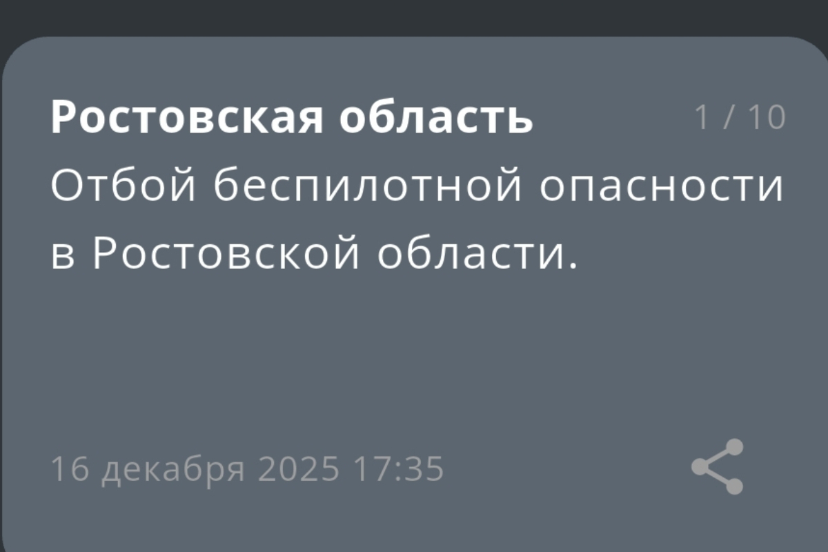 В Ростовской области вечером 16 декабря сняли режим беспилотной опасности. Об этом сообщили в РСЧС около 17:30.