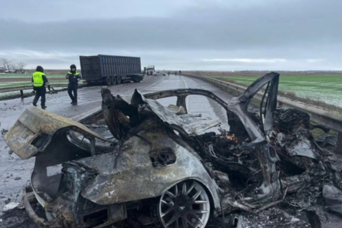 Смертельное ДТП на трассе Азов-Староминская: «БМВ» сгорел после столкновения с автопоездом
