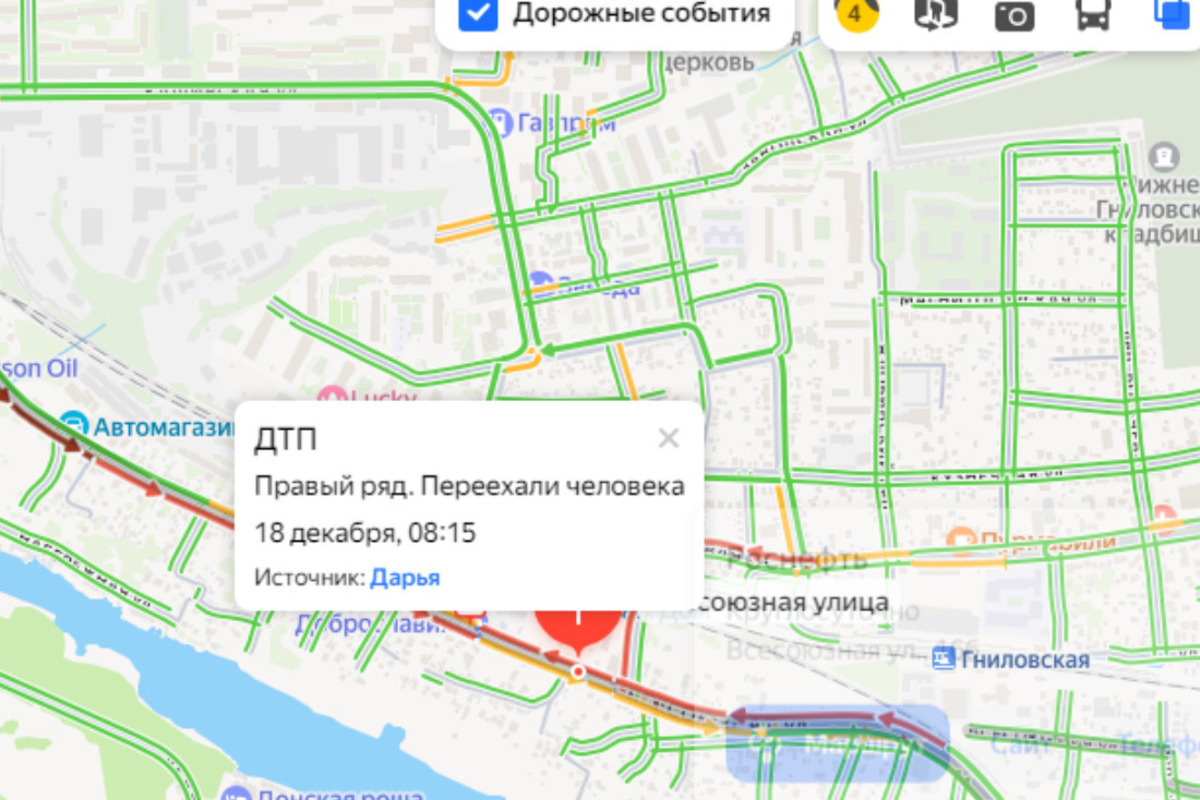 В Ростове на Всесоюзной улице автомобиль сбил пешехода, образовалась пробка. Об этом свидетельствуют данные сервиса Яндекс.Карты.