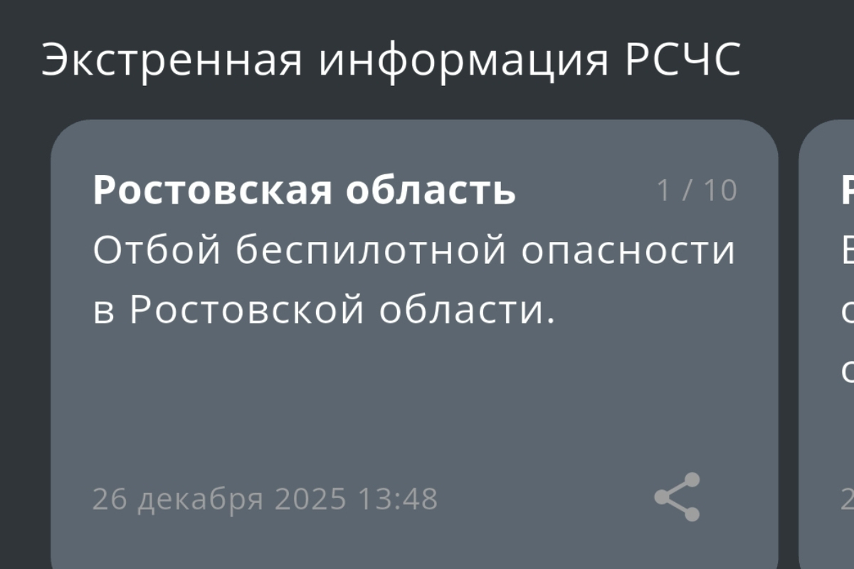 На Дону спустя полтора часа сняли режим беспилотной опасности. Единая государственная система предупреждения и ликвидации ЧС предупредила жителей примерно в 14:00.