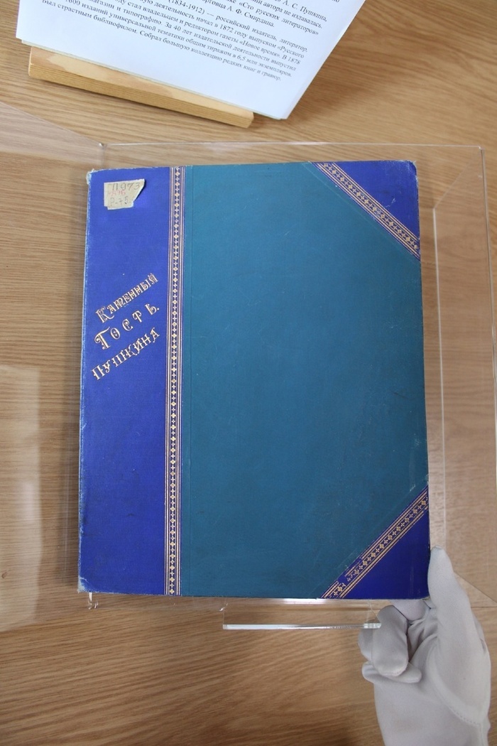Особый интерес представляет книга Александра Пушкина «Каменный гость». Она оформлена вручную акварелью С.С. Соломко, само издание отпечатано на слоновой бумаге. Обложка выполнена на тканевой основе со специальным слоем из окрашенной пленки, в рельефном золотом переплете. Изначально это было подарочное иллюстративное издание. Для перелистывания рядом с книгой лежат перчатки.