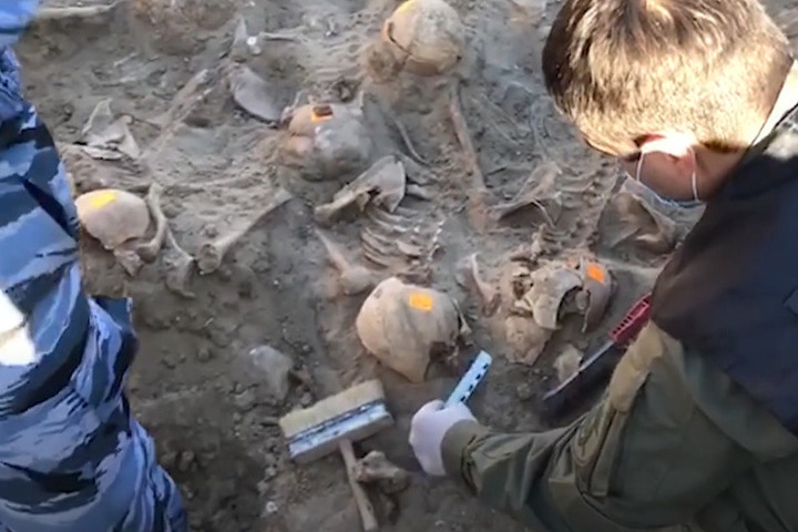 Следователи, криминалисты и участники «Поискового движения России» обнаружили останки не менее 266 человек. В земле также покоились женщины и дети с признаками огнестрельных ранений.