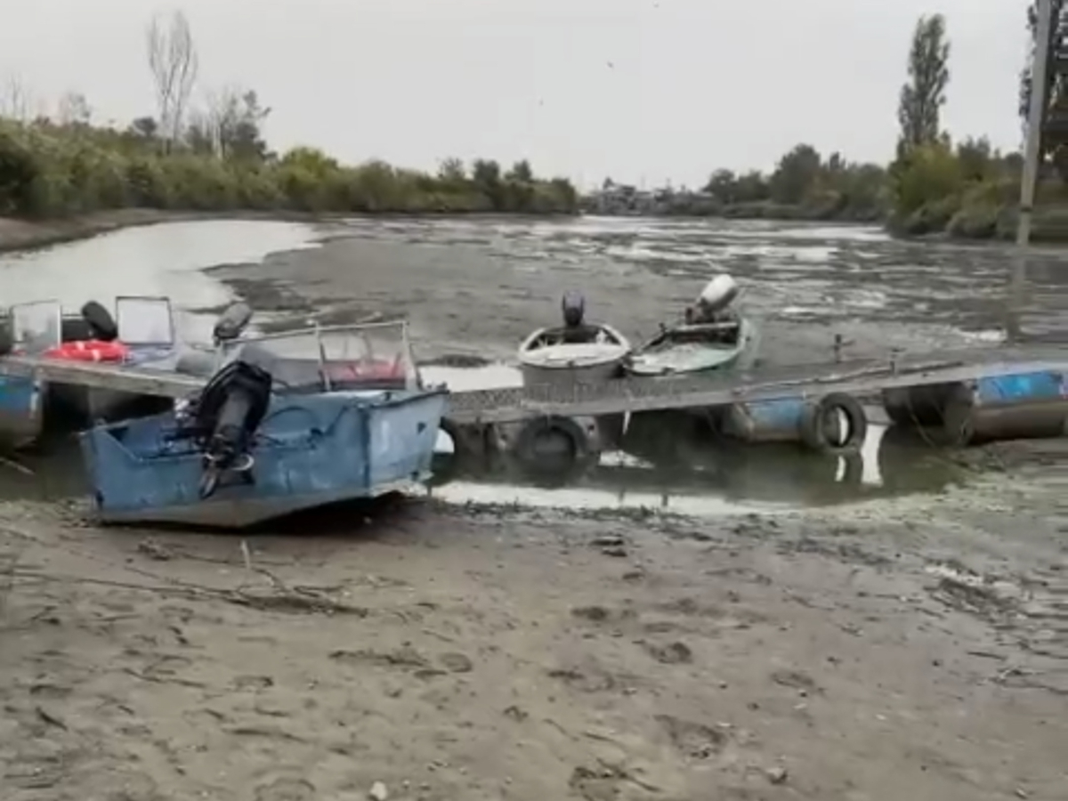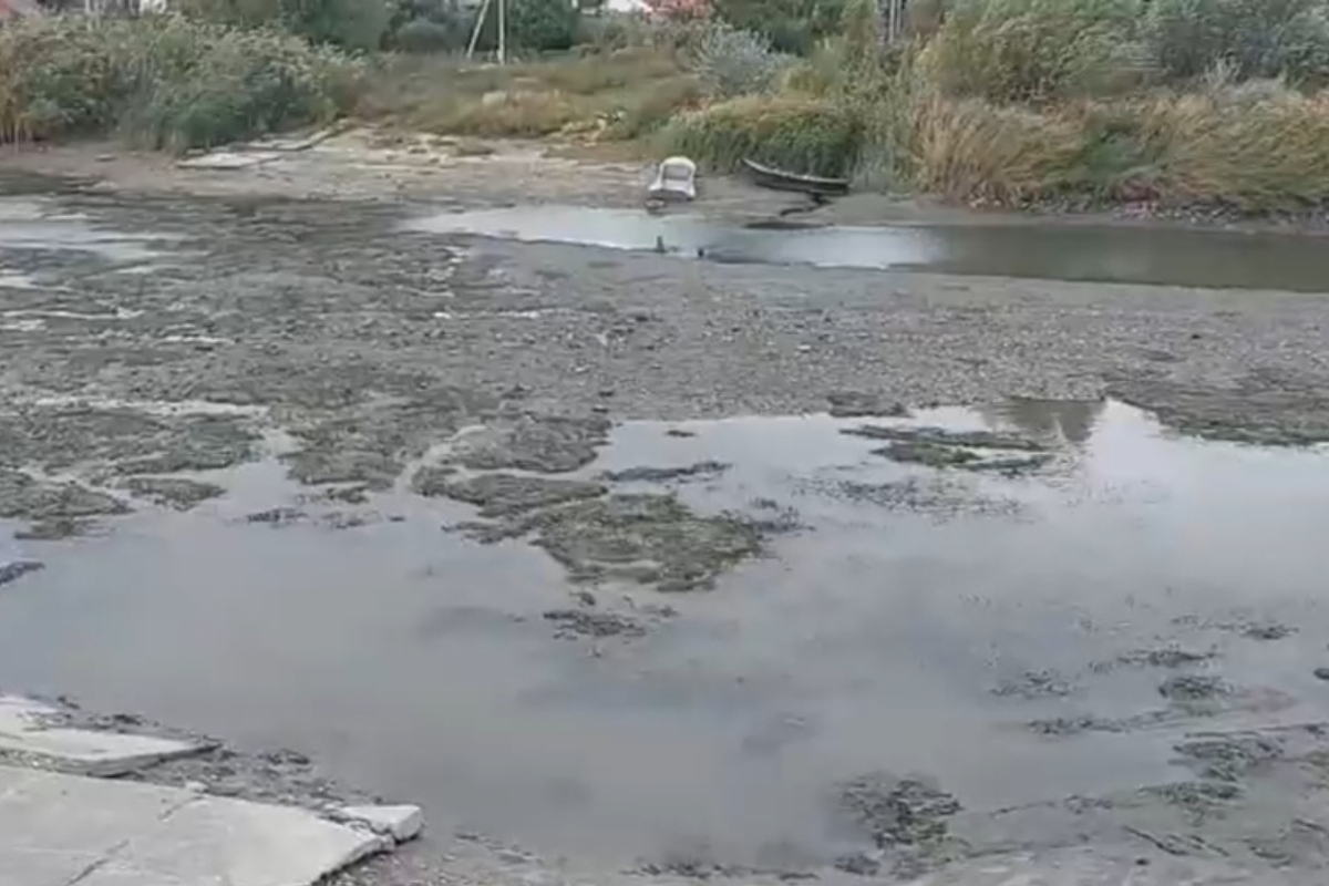Река Азовка в Ростовской области катастрофически обмелела из-за ветра. Кадрами у Коллонтаевского моста жители поделились 1 октября.