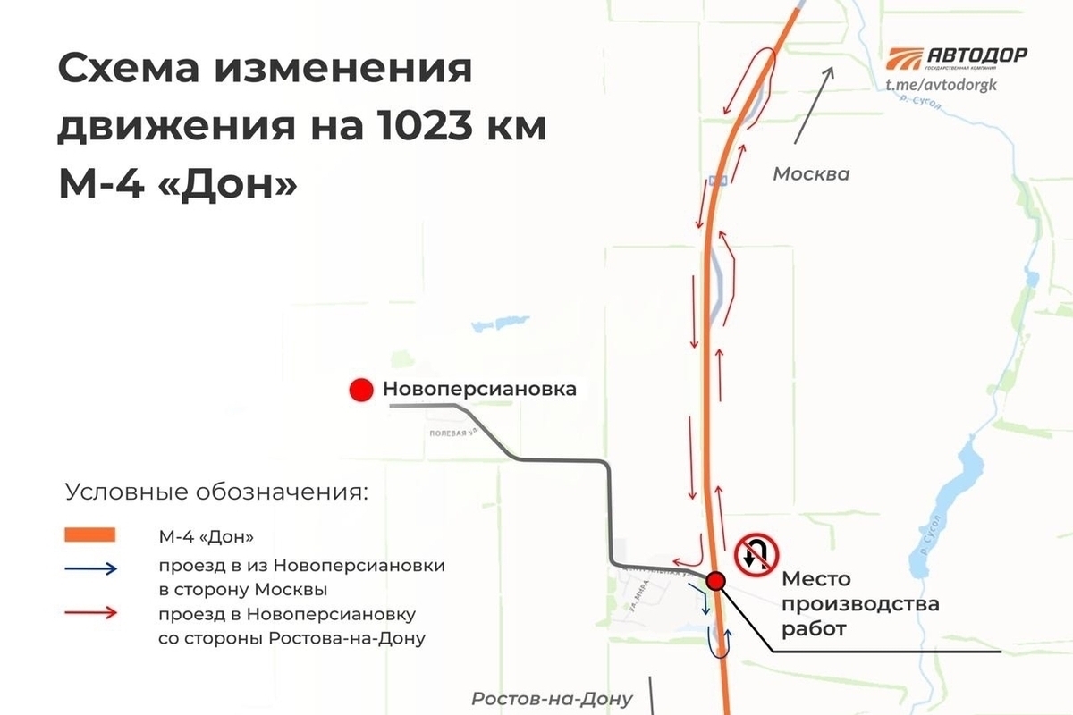 В качестве объездного пути автомобилистам предлагается воспользоваться разворотом на 1018-м километре автомагистрали М-4 «Дон».