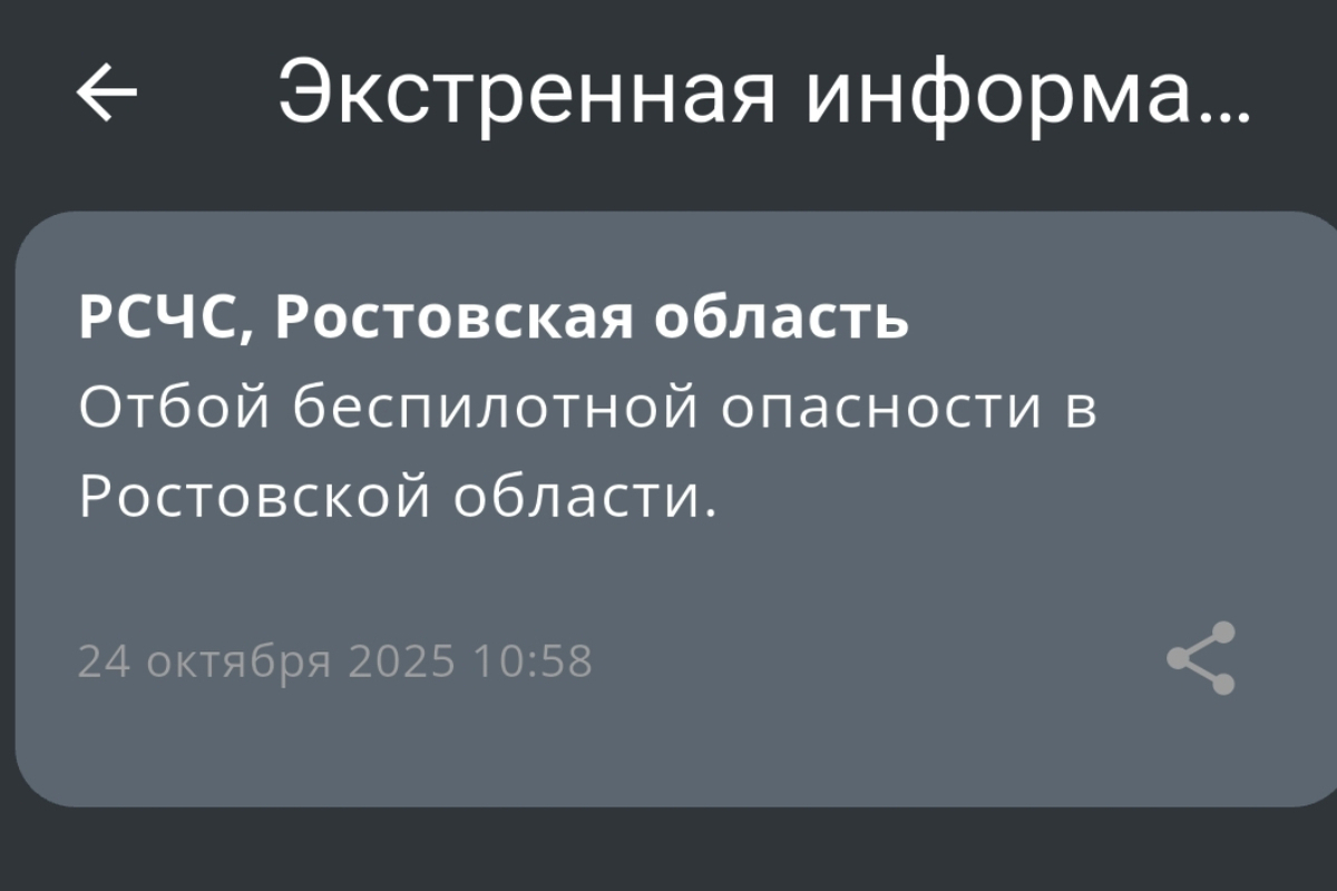 В Ростовской области объявлен отбой беспилотной опасности утром 24 октября. Об этом сообщили в РСЧС.