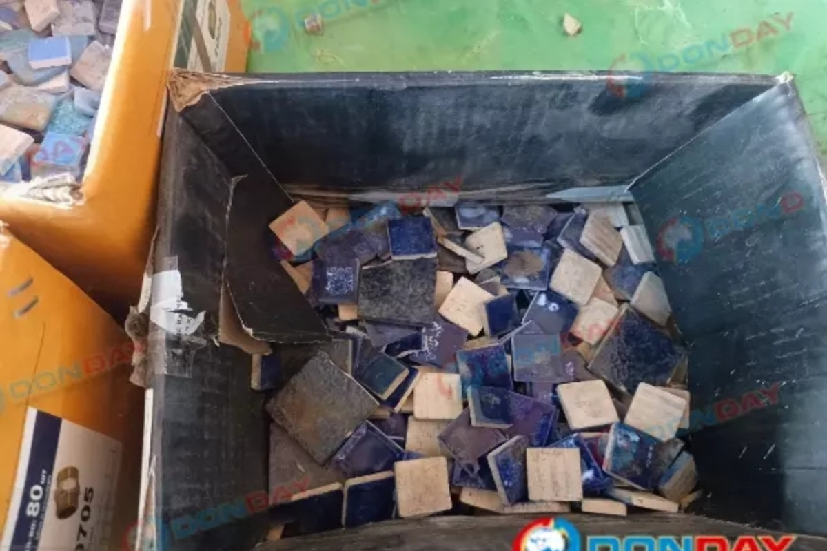 У активистов есть 19 ящиков остатков плитки, использованной при создании мозаичных переходов. Среди них есть мусор и бракованные детали. Волонтеры сортируют мозаику по цветам. Также они собирают обычную советскую плитку.