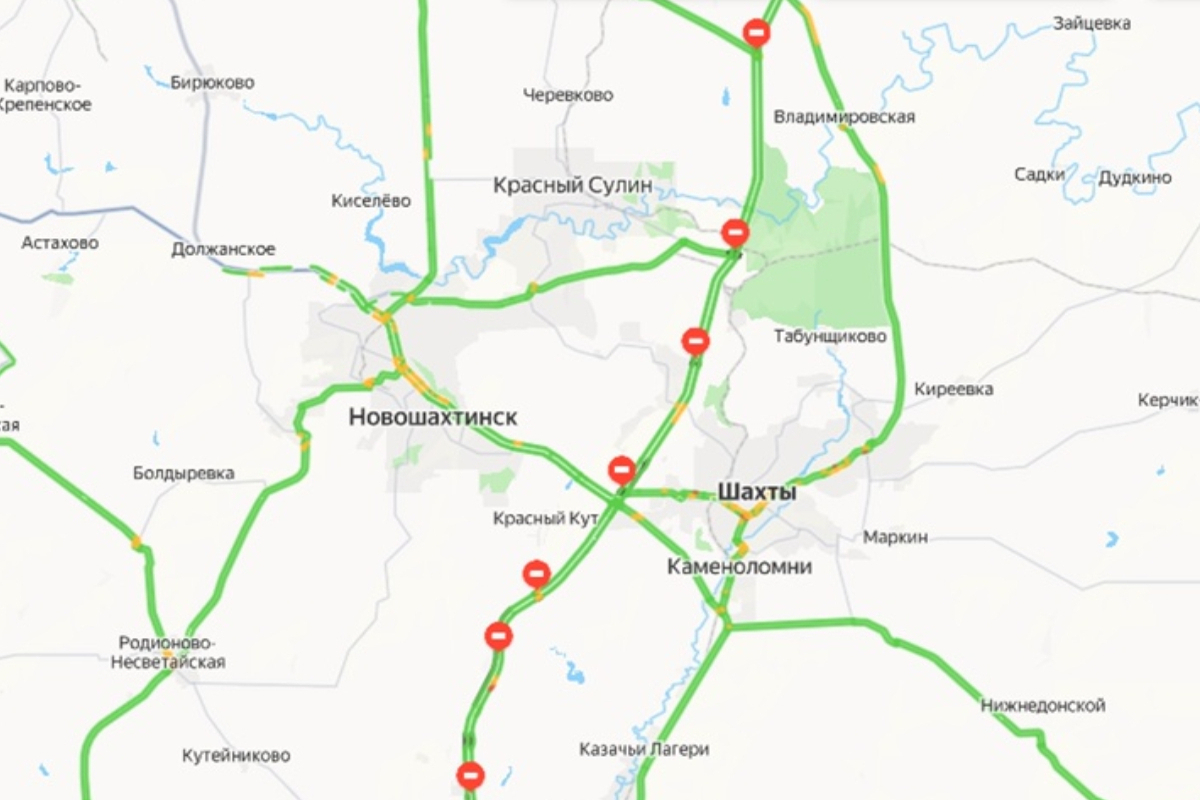 Водителям советуют объезжать участок через поселки Рассвет и Родионово-Несветайская слобода.
