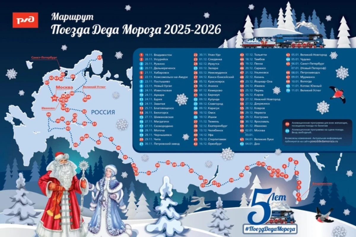 На станциях, где поезд будет делать остановки, ожидаются праздничные развлекательные программы. В ряде крупных городов будет организован доступ внутрь поезда, где можно будет увидеть кукольное представление.