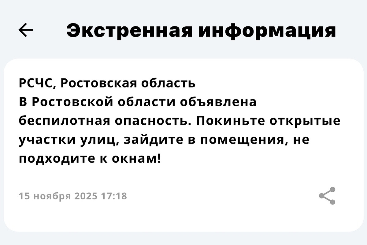 В Ростовской области сообщили о риске атаки беспилотных летательных аппаратов.