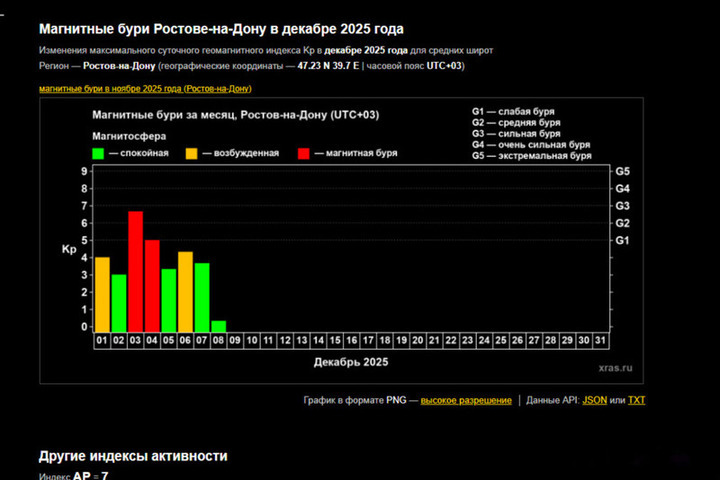 В ближайшие дни жителей Ростовской области ждет ухудшение геомагнитной обстановки. По данным Лаборатории солнечной астрономии РАН, сильные магнитные бури прогнозируются на 9 и 10 декабря. Явление станет следствием выброса солнечной плазмы, произошедшего ночью 7 декабря.