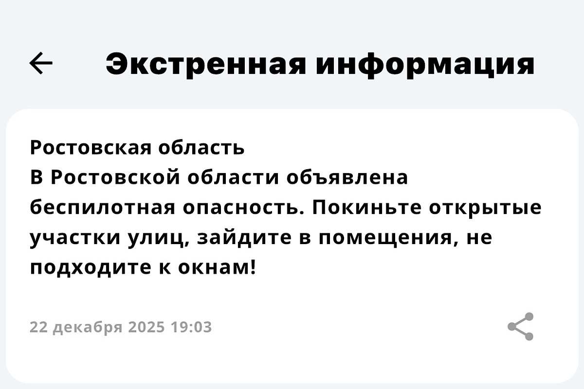 На Дону объявлена беспилотная опасность. Уведомление от РСЧС поступило жителям Ростовской области 22 декабря около 19:00.