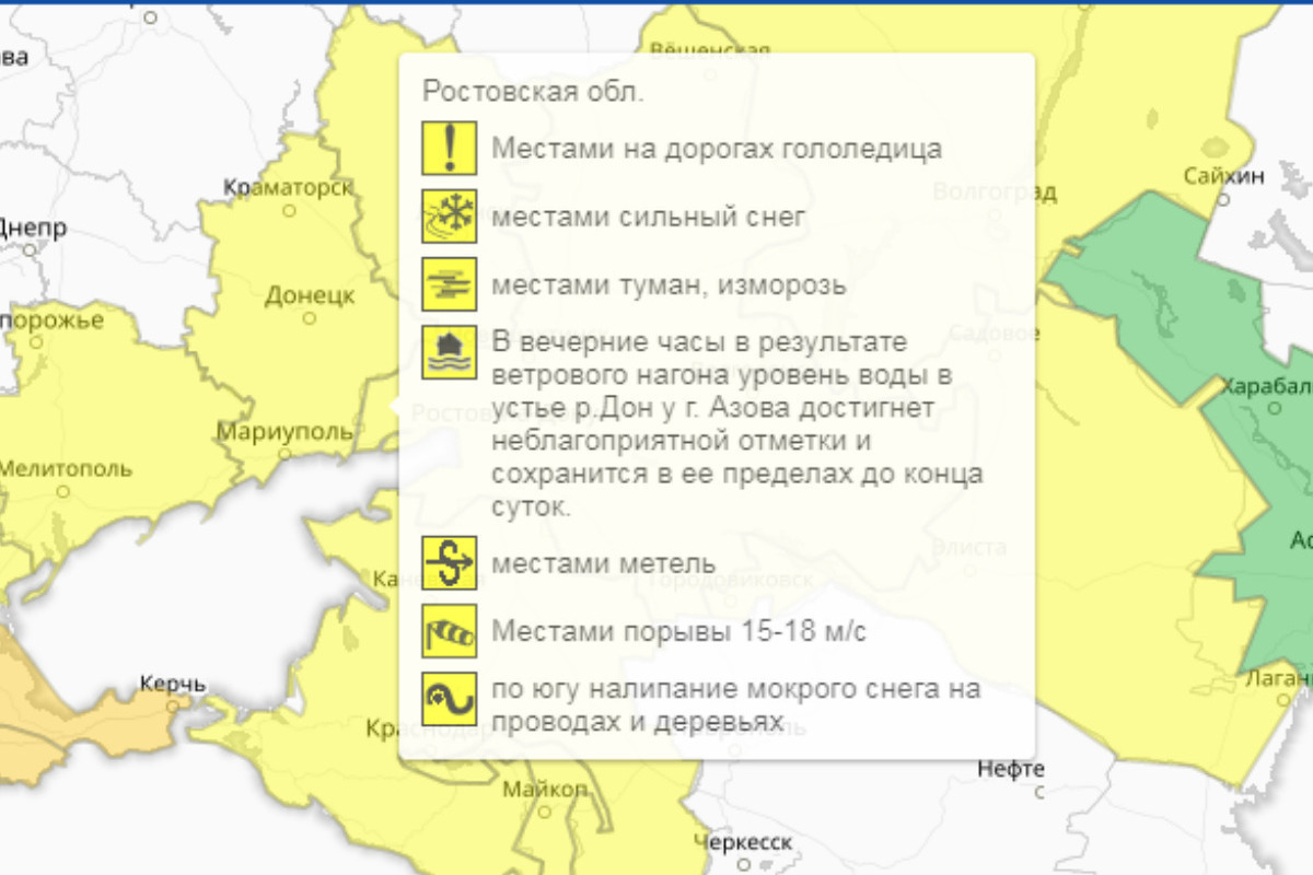 Желтый уровень погодной опасности объявили на Дону 26 декабря