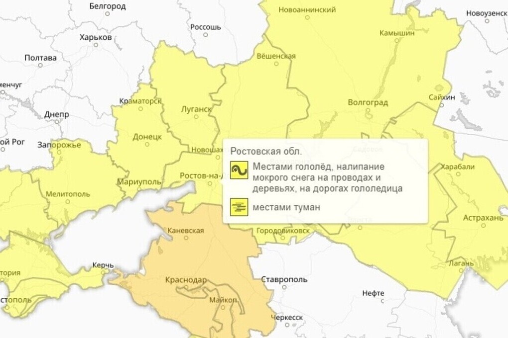 Росгидромедцентр России объявил в Ростовской области желтый уровень погодной опасности из-за надвигающихся гололеда и тумана. Предупреждение будет действовать с 19:00 5 января до 18:00 8 января.