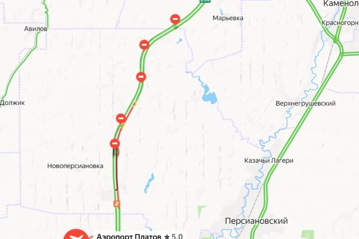 В районе аэропорта Платов в Ростовской области образовалась огромная пробка. Об этом свидетельствуют данные Яндекс.Карт.